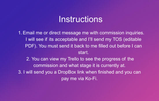 Welcome to my commission sheet homepage! If you're interested in taking a commission from me, see what you want and dm me!